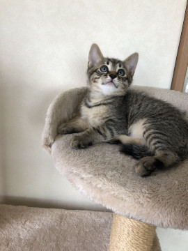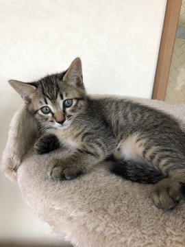 響くんの方がふっくらしていて、おっとりな性格のキジトラ男の子です。