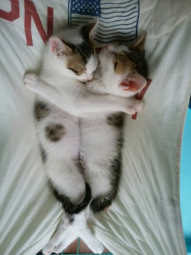 背中のキジ柄がサッカーボールに似ていて、ちょろちょろ走るとボールが転がっているようです。(サッカー)活発に兄弟たちと遊び、他の成猫とも仲良くできます。