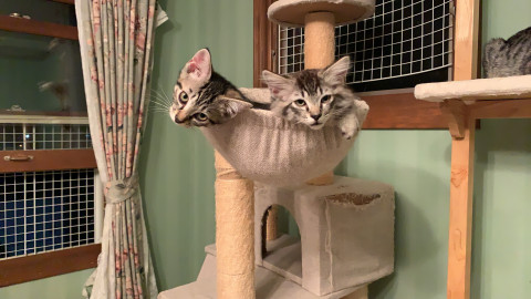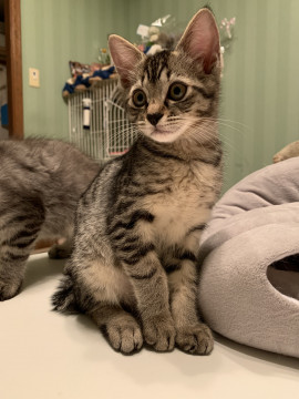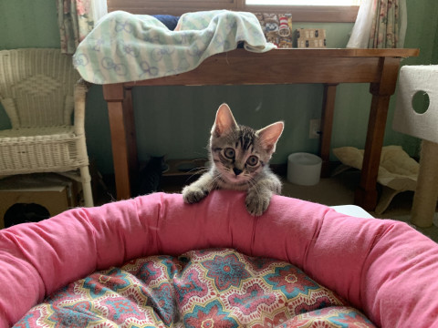 ★まだ、子猫で遊びたい盛りです。できるだけ姉妹一緒のお家希望です。2匹ですと多少のお留守番も寂しくないですし、猫の社会性を学ぶ上でも良い事が沢山あります。