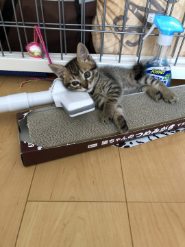 別に募集している、ミケ猫のモモと仲良しでいつも走り回ってます。