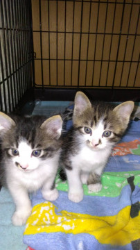 キジ白5兄弟 微妙に模様が違い、尻尾も長い子と短い子がいます。