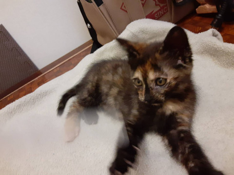 2匹とも保護当初は目やにが出ていましたので、目薬、点鼻薬投薬中です。回復しています。サビちゃんはネコハジラミの卵が付いていたため駆虫中、黒ちゃんは少し軟便気味なので整腸剤を投薬中です。