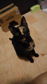 遊び盛りで、遊んであげると嬉しくて興奮するタイプ?結構おてんばなので、猫に慣れてる家族がいいと思います。