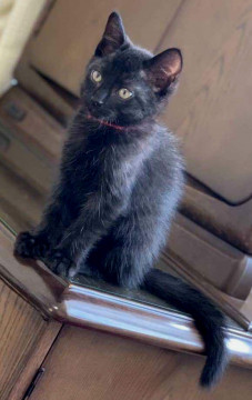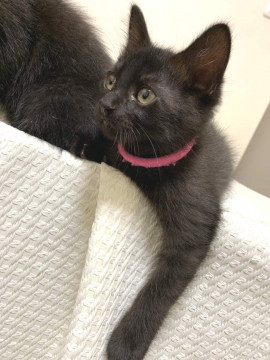 ふわふわちょっと毛足の長い、黒の子猫のエマちゃん。