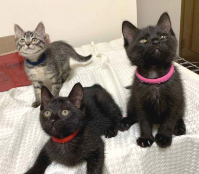 子猫は男の子3匹(黒2匹、キジ1匹)、女の子2匹(黒)の5匹です。