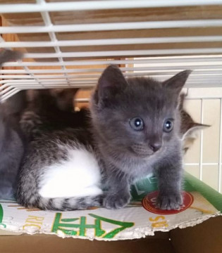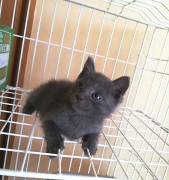 5月初め頃生まれの 生後1ヶ月半くらいになる ダークグレーの 綺麗な猫ちゃんです。