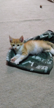 近所の猫好きのお婆さんのところで鳴いていました。母猫も兄弟もいなく、どういう経緯できたかは分かりません。まだ小さく痩せていて、生きていけないと思い、保護しました。去年も捨てられました。私は3匹の猫を飼っているので、飼うことができません。どうかこの子の里親になって下さい。