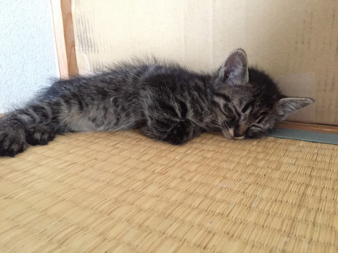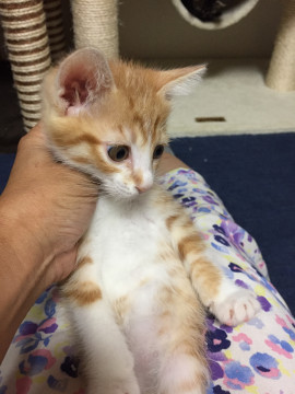 好奇心旺盛で活発な子です。撫でるとゴロゴロと喜びお腹を見せて転がります。