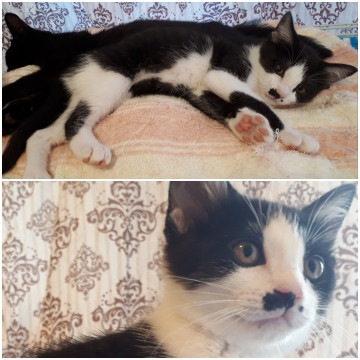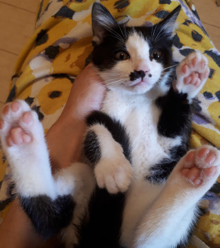 ●白黒ちゃんはまだ少しビビりで隠れたり逃げたりしますが、抱っこやお腹さわったりもさせてくれるようになりました。