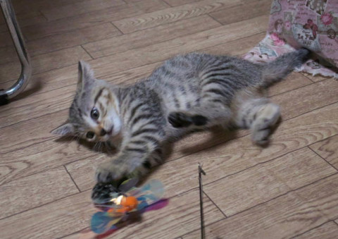 猫ジャラシは、一生懸命で人の傍で遊んでいます。