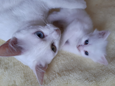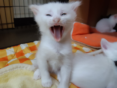 母猫のゆきちゃんは多頭で飼われていました。保健所に収容された時にはすでに妊娠しており出産間近だったため当方で保護し5匹の子猫を出産しました。