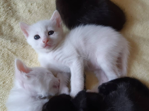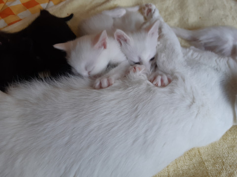 母猫のゆきちゃんは多頭で飼われていました。保健所に収容された時にはすでに妊娠しており出産間近だったため当方で保護し5匹の子猫を出産しました。
