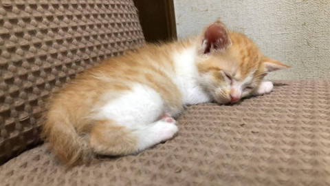 母猫は、妊娠中に何らかのトラブルで肺の片方が潰れて、そこに内蔵が癒着してしまいました。