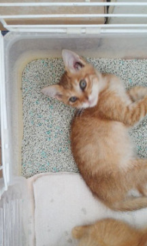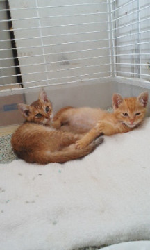 チャトラ♂620グラム、キジトラ♀760グラム。仲の良い姉と弟です。いつも、じゃれあっています。
