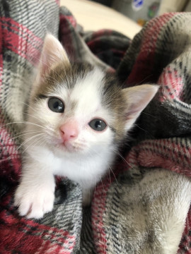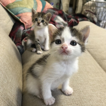 兄妹3匹で新聞紙にくるまれて捨てられていたところを保護いたしました。保護時の体重は85gしかありませんでしたが大きく成長して月齢基準の体重になりました。