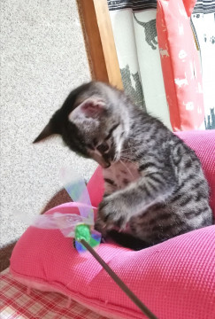 ひとりでいたので、よほど不安だったのか、保護して以来、膝にのって来たり、寝そべっていると背中にちょこんと座って離れなかったりと、とても人懐っこく人恋しいところがあり、切なくなります。