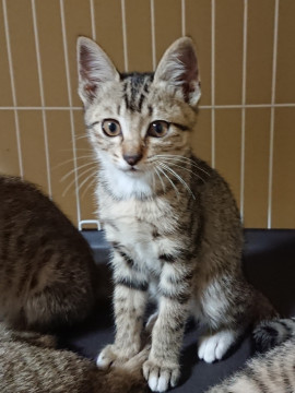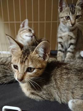 まるでベンガルのように短毛で美しい毛色の兄妹です。