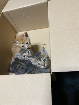 6月24日に新聞にくるんで公園に箱に入れられてた3匹兄弟を知人と保護してます
