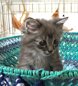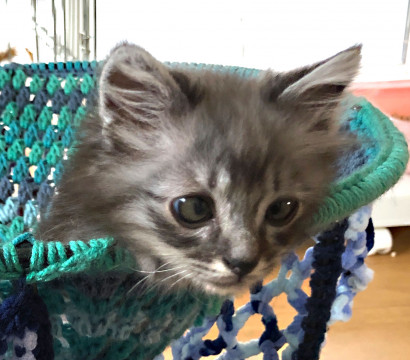 体全体,グレーのふわふわの柔らかな長毛で、うっすらと縞々が見えてます。