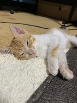 保護時は痩せていて顔がとがってましたが、少しふっくらしてきました。