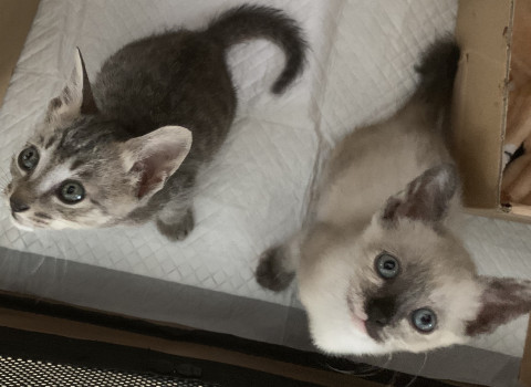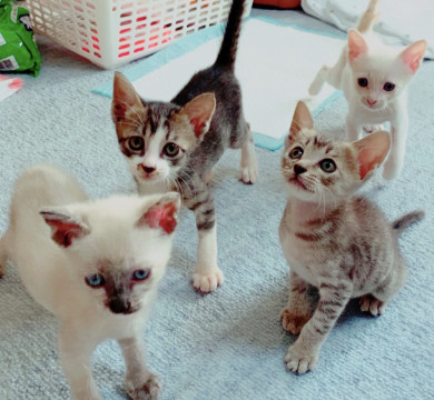 キジが男の子。お目目ぱっちりの可愛い子さんです。