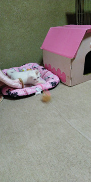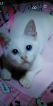 友人が道端で鳴いていた子猫をみつけ、相談されたので保護しました。綺麗な白猫です。