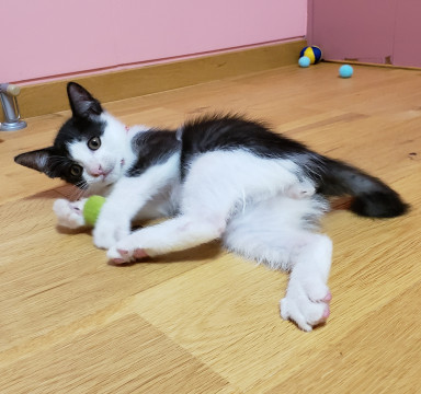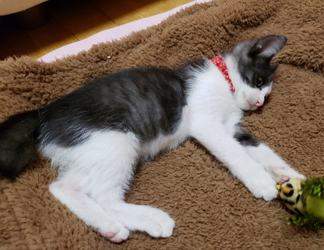 初めはカプカプと強めの甘噛みが多かったので「カプくん」と仮名を付けましたが、他の保護猫ちゃんとの子猫プロレスのおかげで優しい甘噛みに変わりました♪