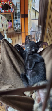 枚方市でTNRしていた時に、付近のエサやりさんからの依頼で、この黒猫ちゃんを含む4兄妹を保護しました。