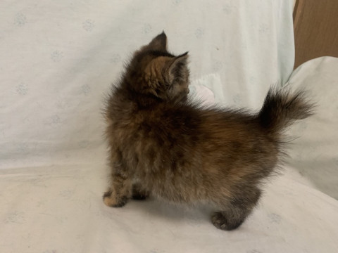 可愛いきじさびの女の子、にゃんしーちゃんです。もふもふで毛足がやや長いので半長毛になるかもしれません。短〜いボブテイルもとってもキュート。人懐こく、他の猫ちゃんにもフレンドリーです。