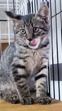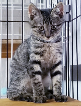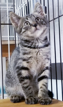 キジトラ模様にまっすぐのしっぽの愛らしい男の子です。