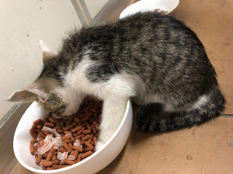 ダニ・ノミ・寄生虫の駆除済み。 猫風邪をひいており、少し元気がありませんが、ご飯はよく食べます。(お皿に手を突っ込んで食べることが多いです。)