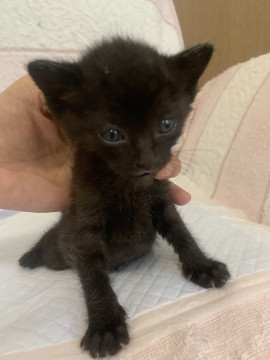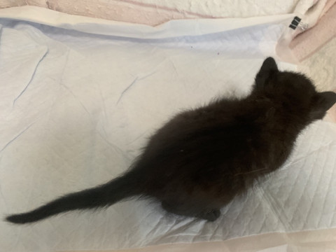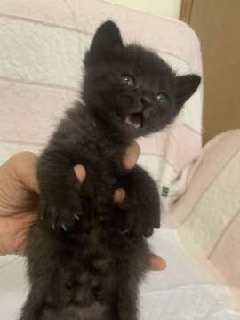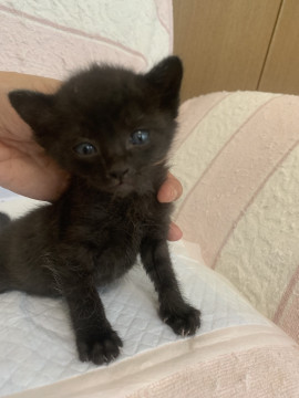 可愛い黒猫、ふぁんく君です。少し小柄ですがくまちゃんみたいでコロコロととっても可愛らしいです。ミルクから育てているので大変人懐こく、甘えん坊でおしゃべりです。