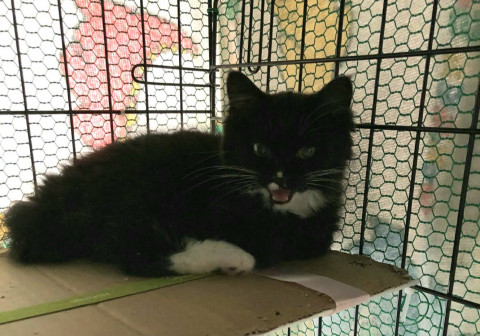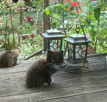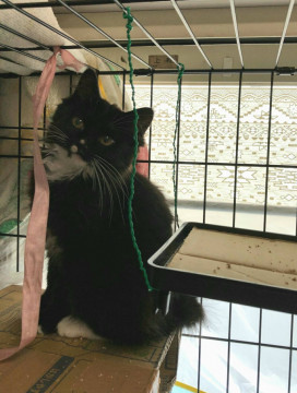 現在は「猫初めての方の家で保護中」で、先に人馴れしてきた黒長毛のこの子猫さんを先に里親募集中。