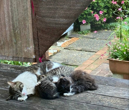 区内で親子が出現し、子猫3匹を保護して親猫TNR予定、子猫は人馴れ練習しています。