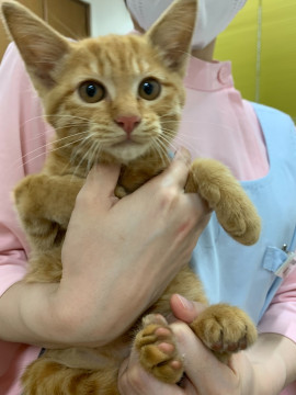 メスのチャトラで、とても人懐こく抱っこも大好きです。人と一緒に居るのが好きで遊んでもらえるのが楽しみです。