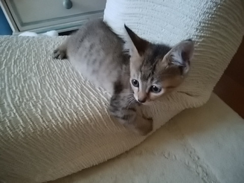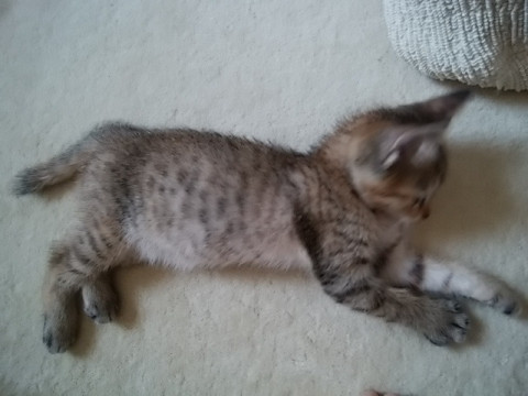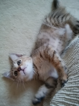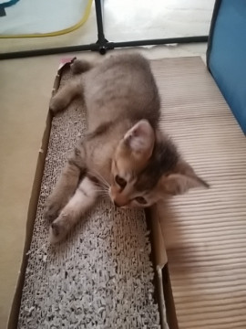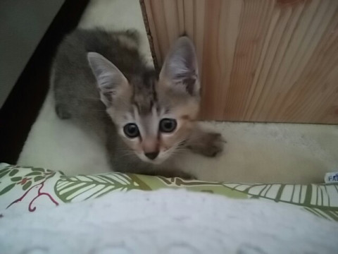 色の薄いサビっぽくもあります。ほんの少しだけアビシニアンっぽい色でもあります。