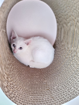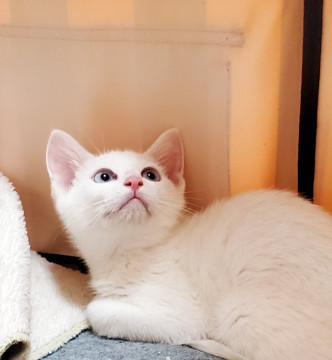 ブルーの瞳がとても綺麗な真っ白い男の子です、性格は穏やかで甘えん坊