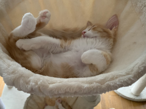 ちょっとビビリですが、猫じゃらしでは楽しく遊んでます。男の子らしく活発です。