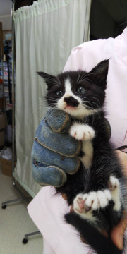 いつもご協力くださっている運搬ボランティアさんが、人気のない場所に一匹でいるのを見つけ、保護しました。大きな声で鳴いていたそうです。