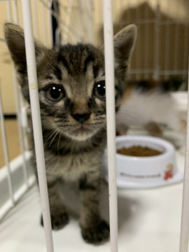 猫嫌いのお宅の納屋に母猫が子猫6匹を連れて突然現れ、困り果てて相談があり子猫は保護して家族を募集、母猫は避妊手術をするために保護しております。