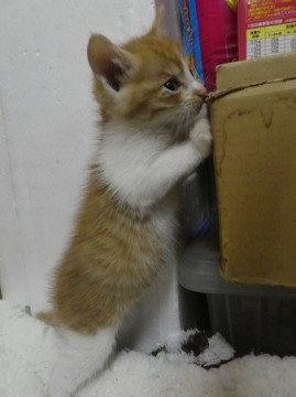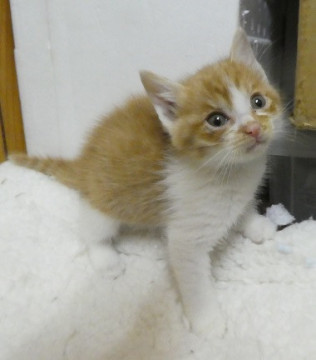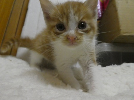 少しトラ模様がある茶白で、シッポまっすぐです。