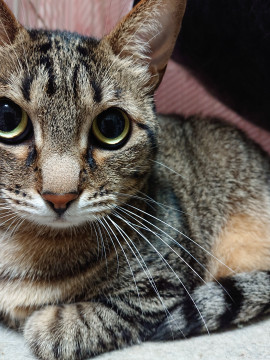 とても可愛い声で甘えます。名前を呼ぶと鳴いてお返事します。