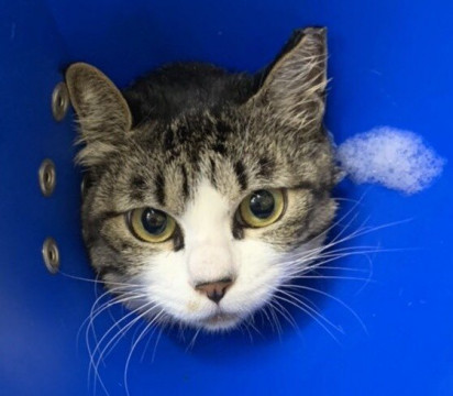 保護してからトリミングショップで綺麗にシャンプーしてもらいましたが、大人しくおりこうさんでした!