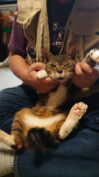 保護した当日からベタ慣れで、治療のときも、お爪切りも、お風呂も、ほんとーに静かにお利口さんにしています。