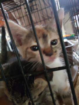 少し色味の薄いキジ三毛です。猫にも人にも慣れています。
