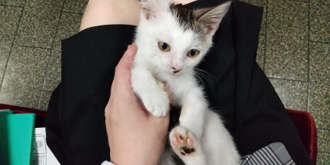 保護をした当初は風邪をひいていましたが、今は投薬と点眼の甲斐があってきれいになりました。ブロードラインにてノミダニ・消化管内寄生虫駆虫済み(但し体内の寄生虫に関しては1回の投薬で取り切れない場合があります)