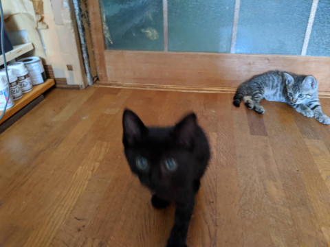 近所の方が子猫が庭にいると、連絡してきました。行くと2匹の子猫が鳴いていました。なんとか保護することが出来ました。1ヵ月位でミルクから初めて無事に育ちました。今私の家には3匹の猫を飼っていて、飼うことができません。どうかこの子の里親になって下さい。