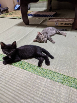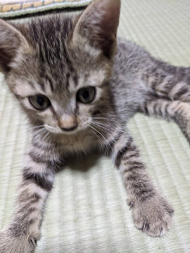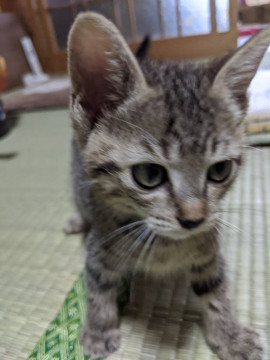 近所の方が子猫が庭にいると、連絡してきました。行くと2匹の子猫が鳴いていました。なんとか保護することが出来ました。1ヵ月位でミルクから初めて無事に育ちました。今私の家には3匹の猫を飼っていて、飼うことができません。どうかこの子の里親になって下さい。