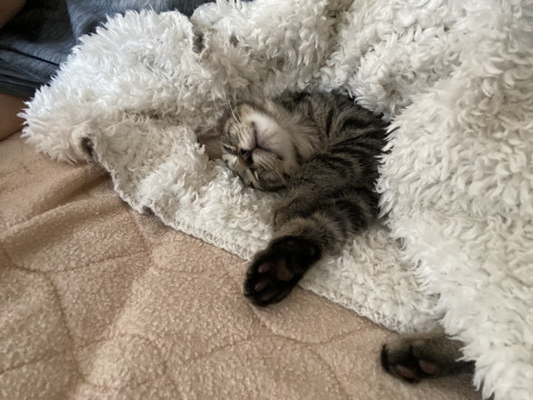 私のお腹の上で、毛布をちゅぱちゅぱ、喉はぐるぐる言ってます?