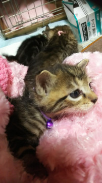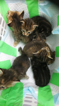 野良猫ばかりが放置されている地域で、捕獲器を置かせて頂いている御宅の方から連絡があり、自宅裏と隣家の塀辺りに、子猫5匹が居る!っと言う事で、子猫達を保護し、母猫は避妊手術をしてリリースしました。野良猫にしてしまうのは忍びないので、そのまま保護をして検査、治療中です。